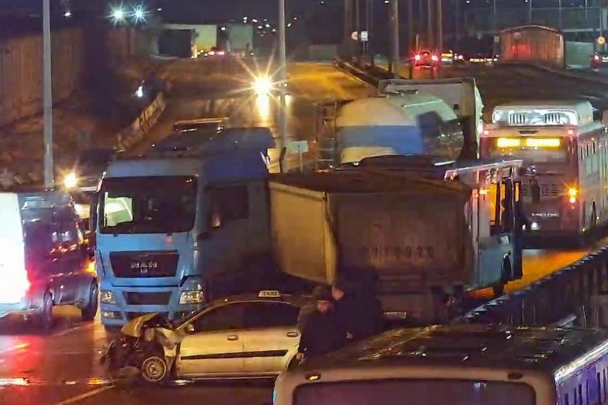 Kənar dairəvi yolda buzlaşma səbəbindən nəqliyyatın hərəkətində çətinlik yaranıb
